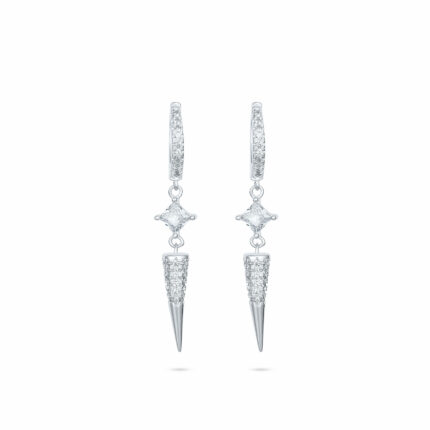 עגיל כסף חישוק משובץ עם שפיץ משובץ