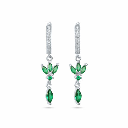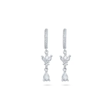 עגיל כסף חישוק משובץ דגם לוטוס עם טיפה נופלת