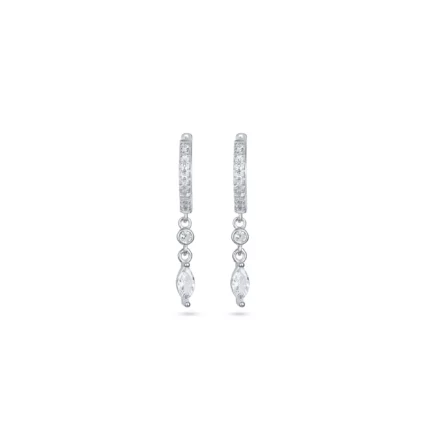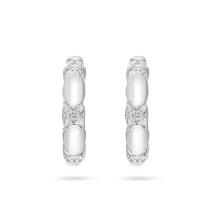 עגיל כסף חישוק משובץ דגם מעוין לבן