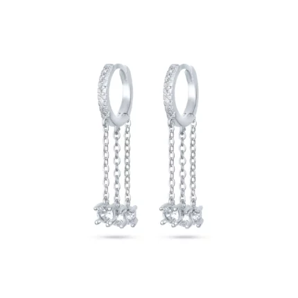 עגיל כסף חישוק משובץ עם שרשראות נופלות