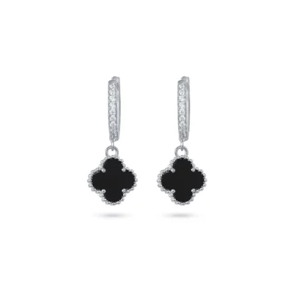 עגיל כסף חישוק משובץ דגם לוטוס לבן