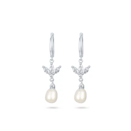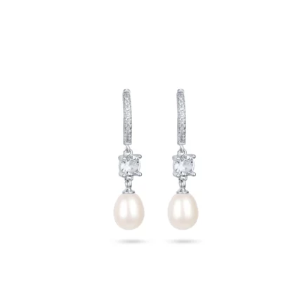 עגיל כסף חישוק משובץ עם פנינה נופלת