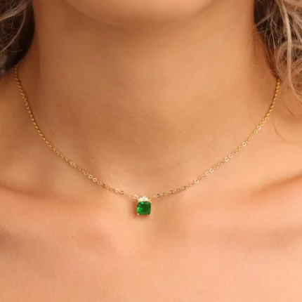 שרשרת כסף ציפוי זהב תליון ריבוע ירוק