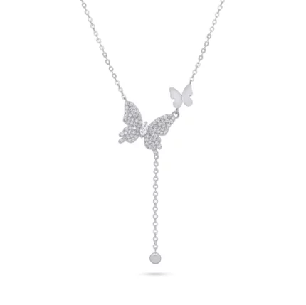 שרשרת כסף 925 כפולה בסגנון עניבה עם תליוני טיפות זירקון