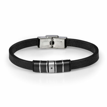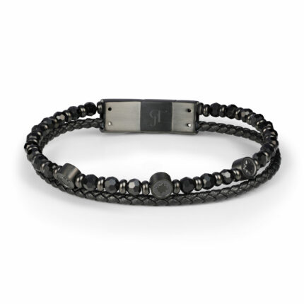 צמיד לגבר שילוב עור וחרוזים בשחור בעיצוב מודרני