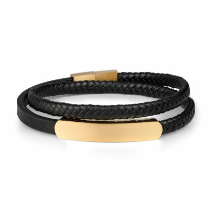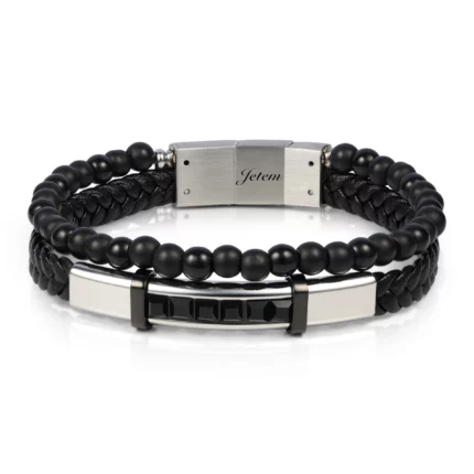 צמיד לגבר בעיצוב יוקרתי עם רצועות עור שחור וחרוזי סטיל