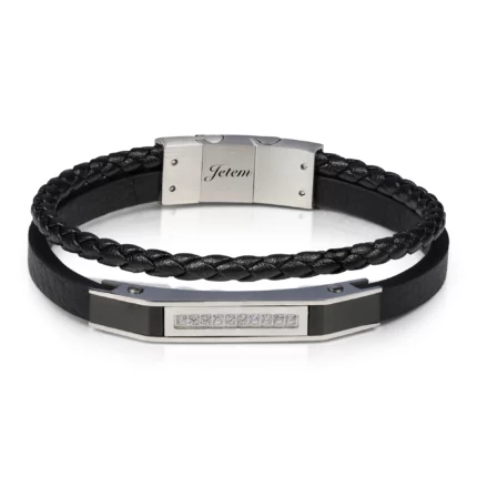 צמיד לגבר רצועות עור בעיצוב אלגנטי משובץ אבנים