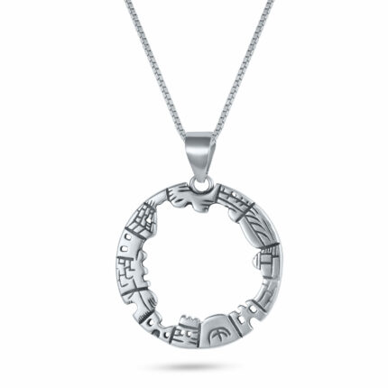 שרשרת כסף מפת ארץ ישראל עם איור של אריה