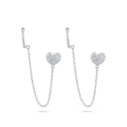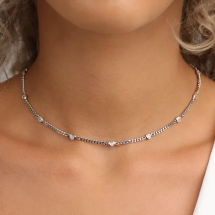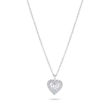 שרשרת כסף 925 עם תליון לב ורוד וטיפת זירקון