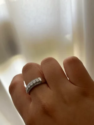 ✨ טבעת הכסף "אלגנס" היא הבחירה המושלמת לכל אישה שמחפשת לשדר יוקרה ואופנה. עשויה מכסף סטרלינג 925 איכותי ומשובצת בשורה כפולה של אבני זירקון נוצצות, הטבעת הזו מבטיחה להביא איתה נגיעה של זוהר לכל הופעה 🌟.