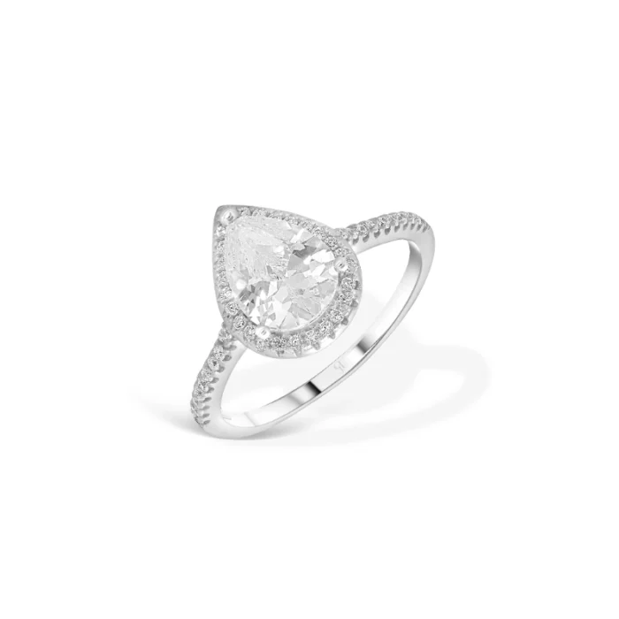 טבעת עדינה עם מוטיב טיפה קלאסית בשיבוץ אבן זירקון
