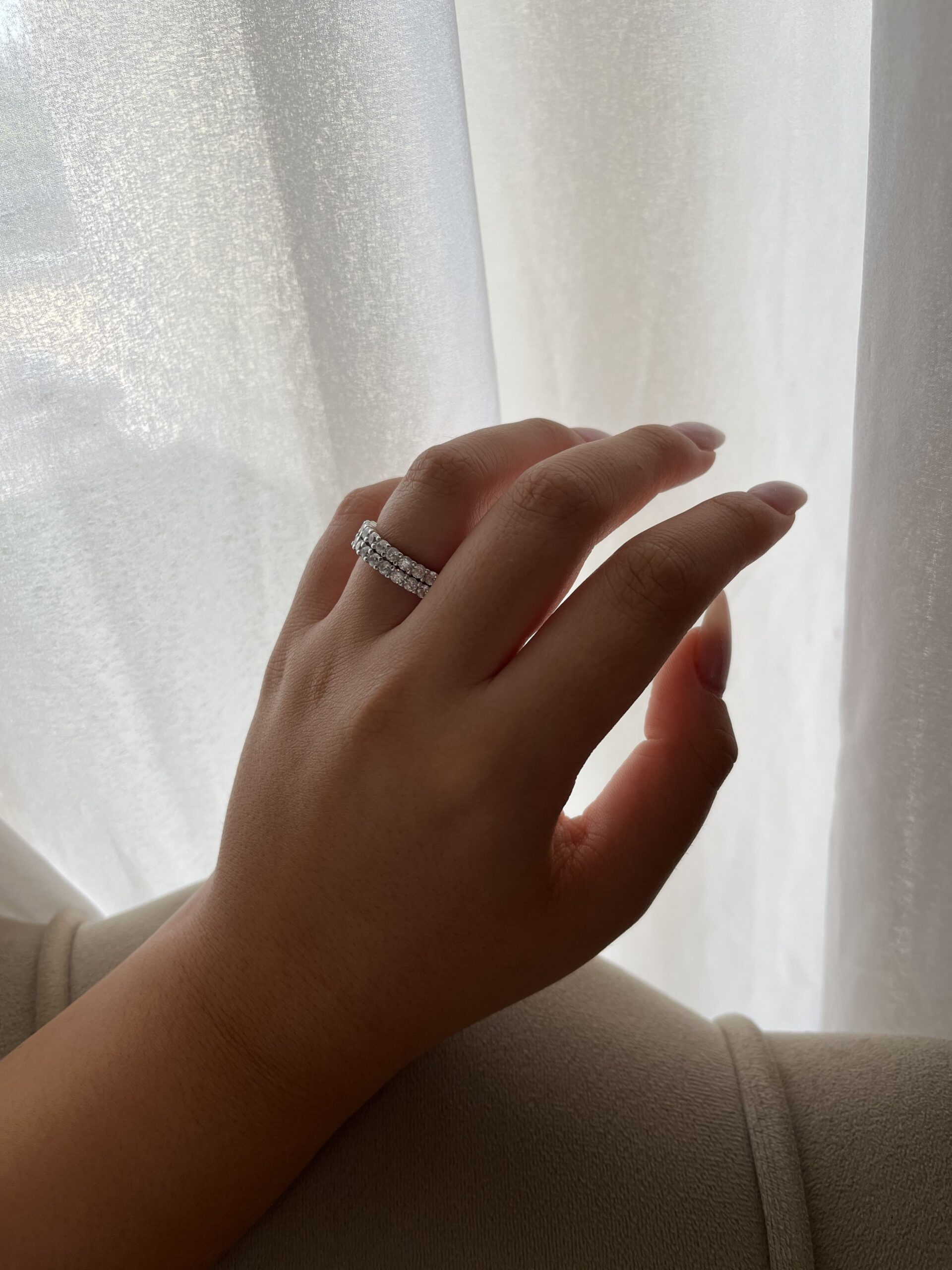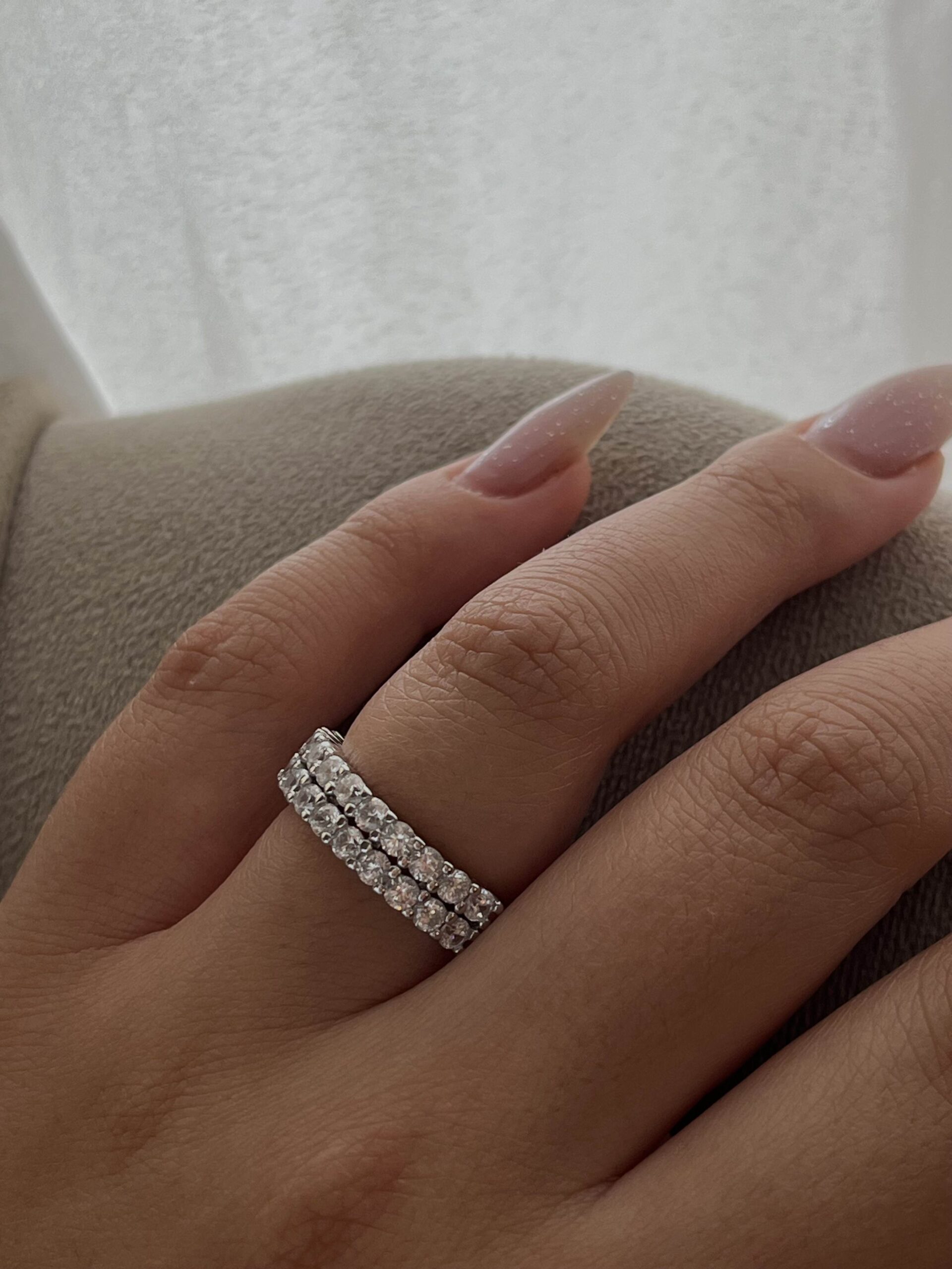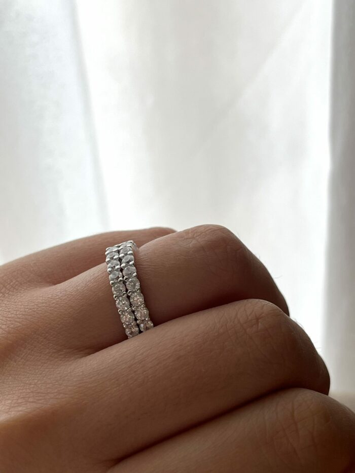 עמוד הבית כל הטבעות טבעת כסף טניס כפולה
