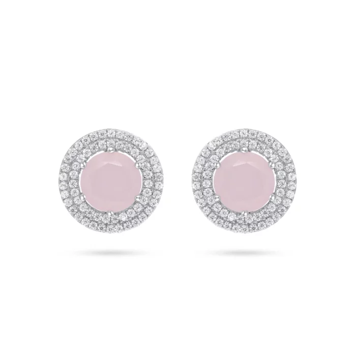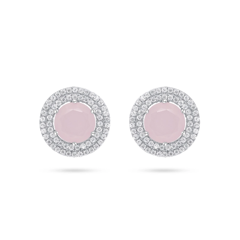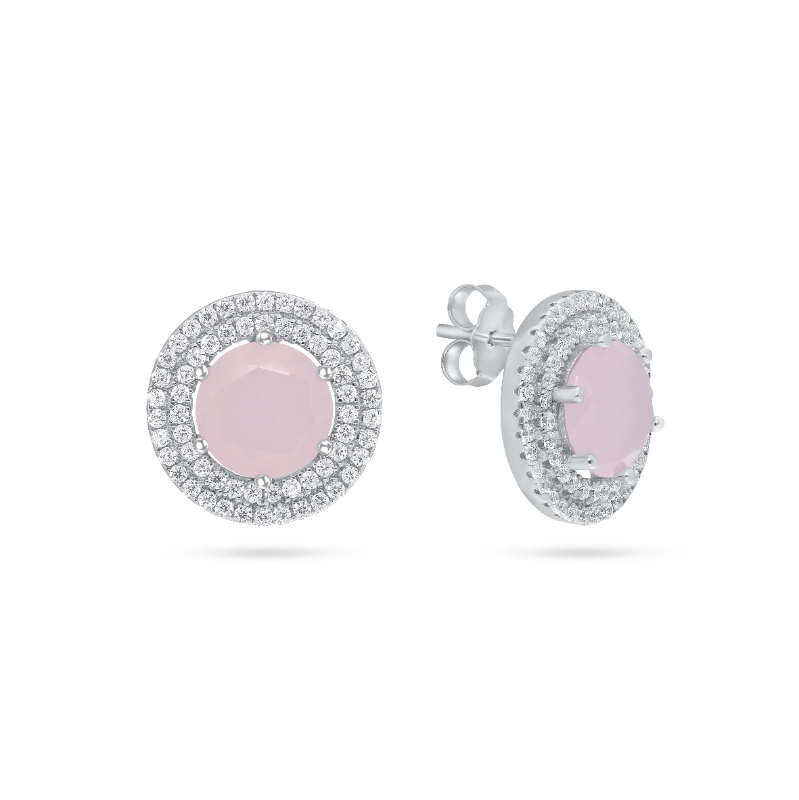 ✨ עגילי כסף בעיצוב עגול עם אבן ורודה וזירקונים כפולים