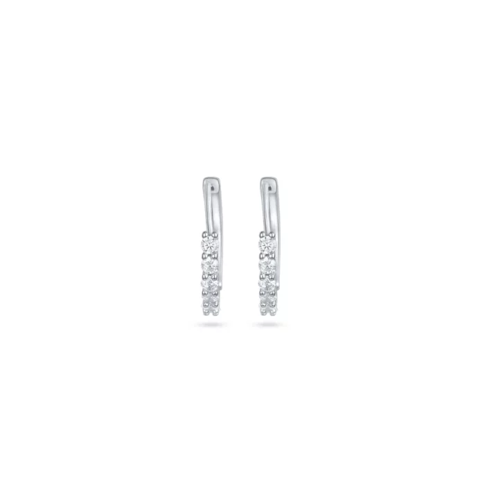 עגיל כסף חישוק משובץ דגם מעוין לבן