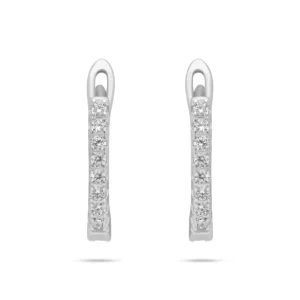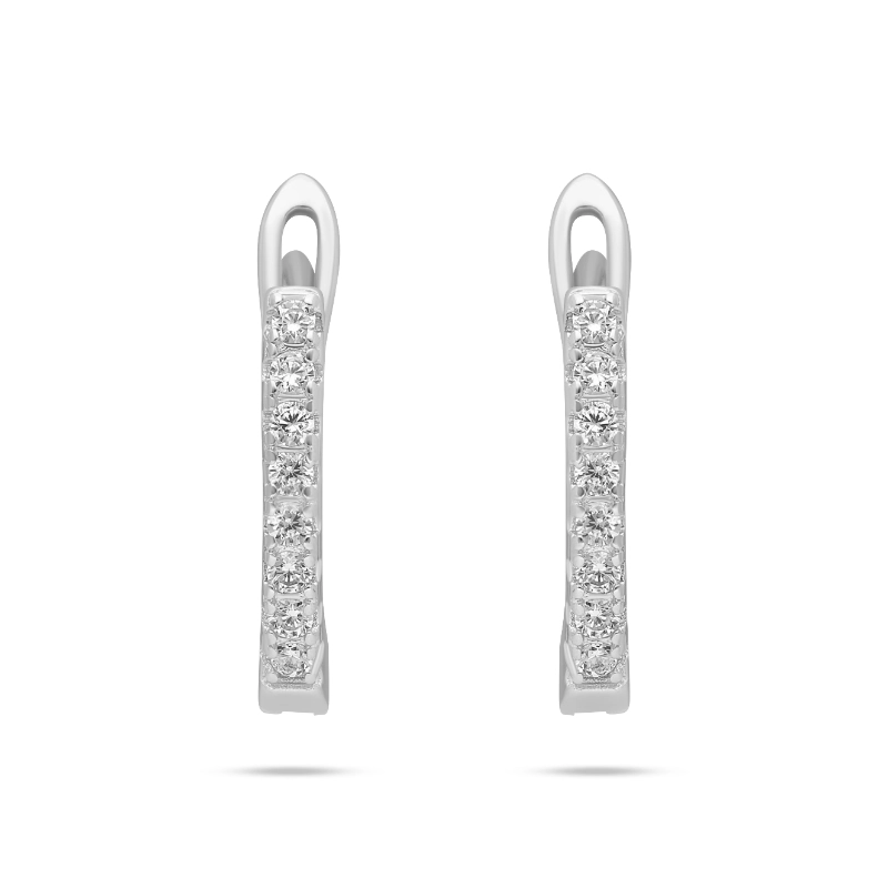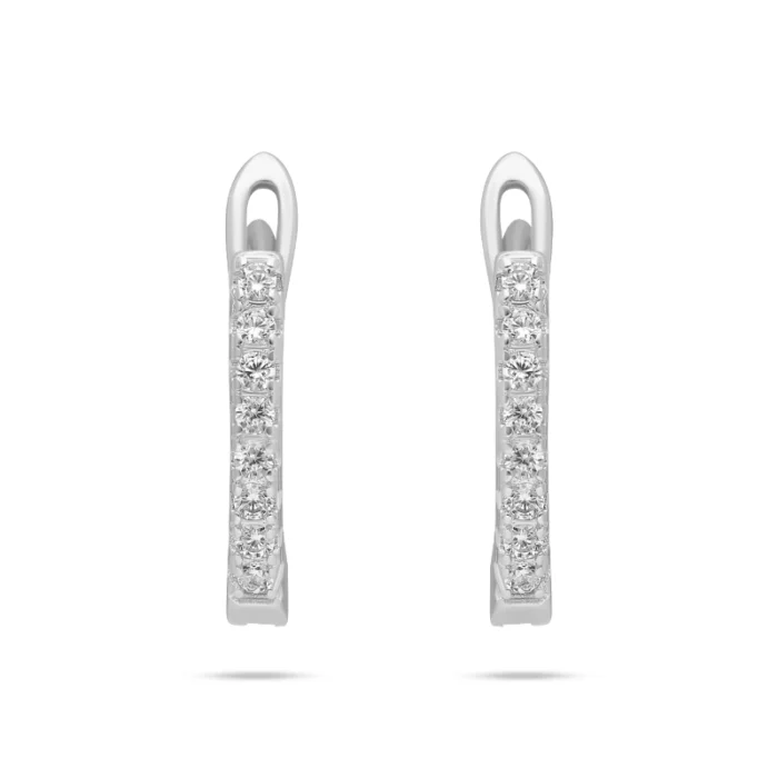 עגילי חישוק אובלי קלאסיים מכסף, משובצים בשורת אבני זירקון נוצצות לכל אורכם. העיצוב האלגנטי והנצחי הופך אותם לתכשיט מושלם לכל לוק – יומיומי או ערב חגיגי.