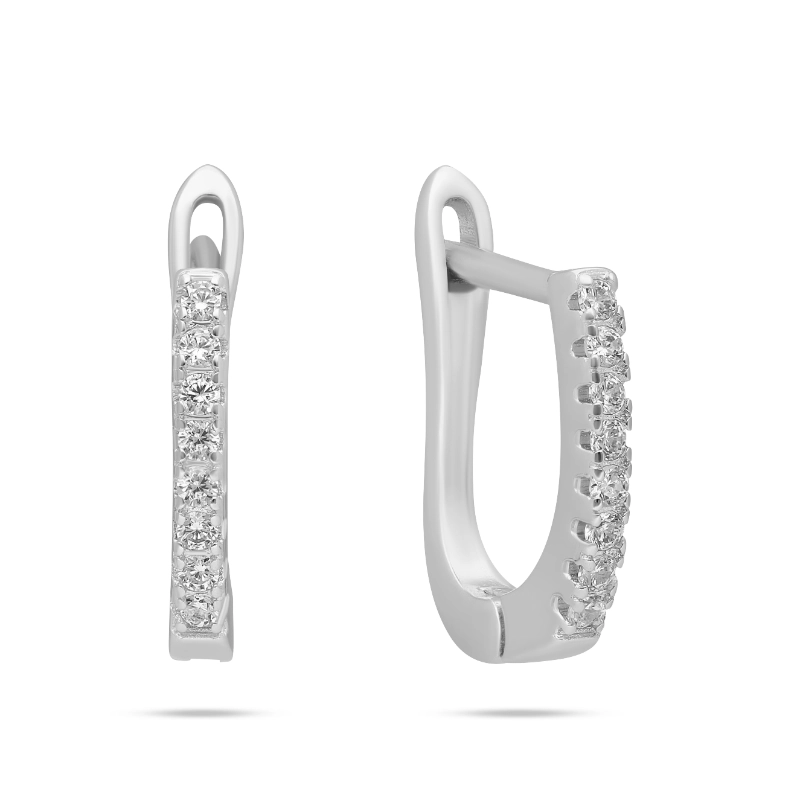 עגיל כסף חישוק משובץ דגם מעוין לבן
