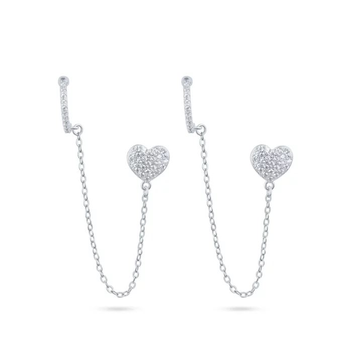 💎 עיצוב ייחודי ומרהיב : העגילים כוללים שרשרת דקה ומשובצת באבני זרקון עם תליון לב נוצץ, המעניקים לך את הזוהר המושלם והמראה הרומנטי.