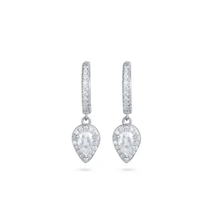 עגיל כסף חישוק משובץ דגם מעוין לבן