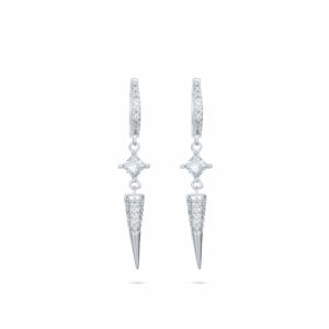✨ השלימי את הלוק שלך עם עגילים מרהיבים : עגילי הכסף התלויים הללו משלבים אבני זרקון נוצצות עם עיצוב מחודד ייחודי, המעניקים לך מראה יוקרתי ואלגנטי לכל אירוע.