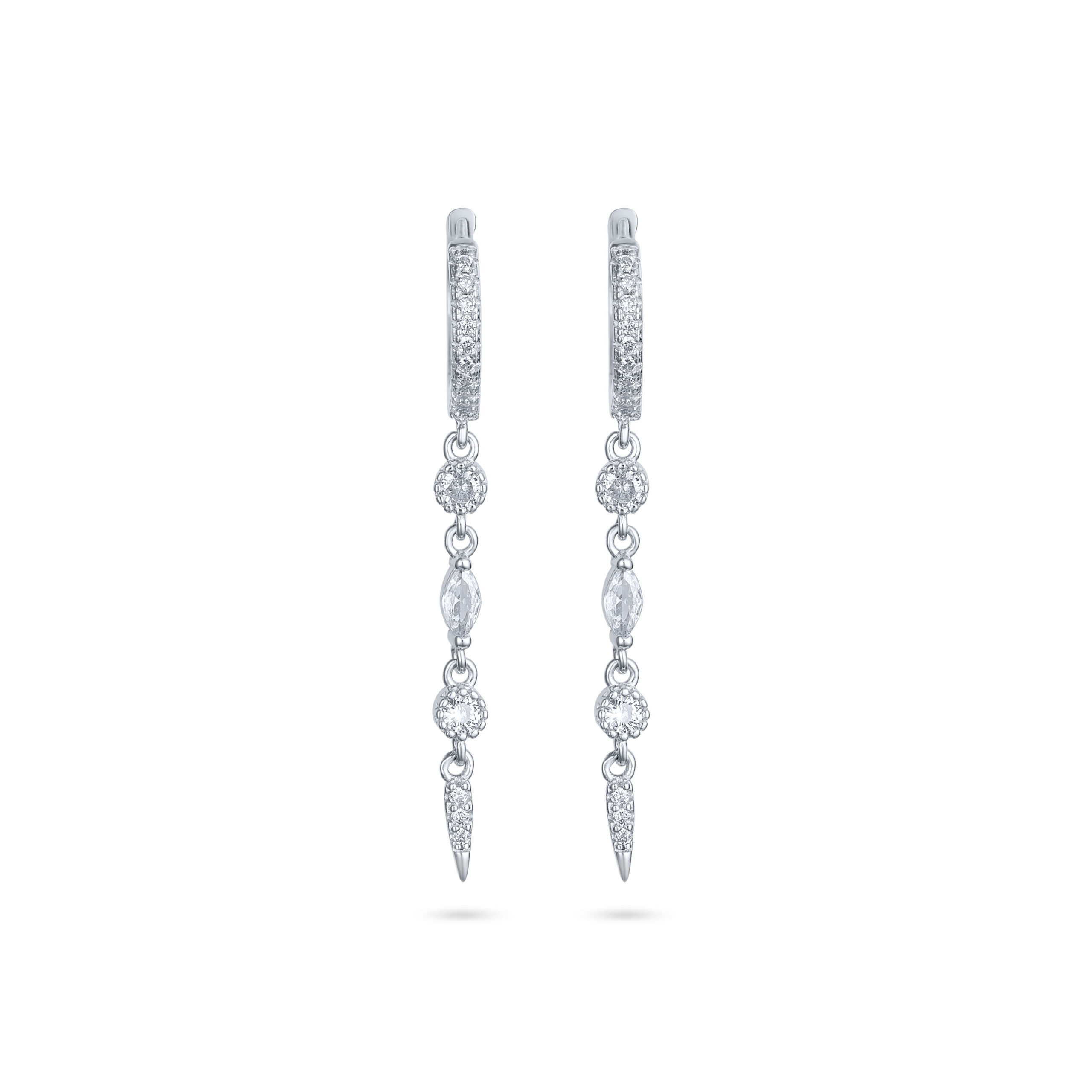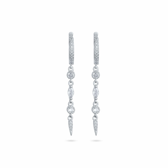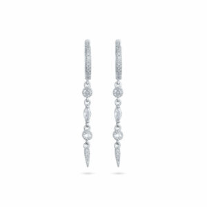 עגיל כסף חישוק משובץ דגם מעוין לבן 289.00 ₪