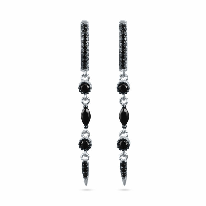 ✨ השלימי את הלוק שלך עם עגילים מרהיבים : עגילי הכסף התלויים הללו משלבים אבני זרקון שחורות נוצצות, המעניקים לך מראה יוקרתי ואלגנטי לכל אירוע.