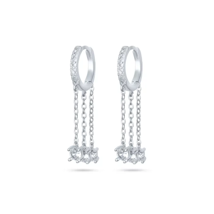 עגיל כסף חישוק משובץ עם שרשראות נופלות