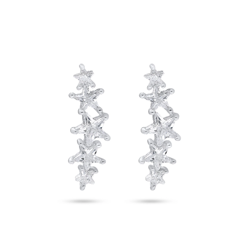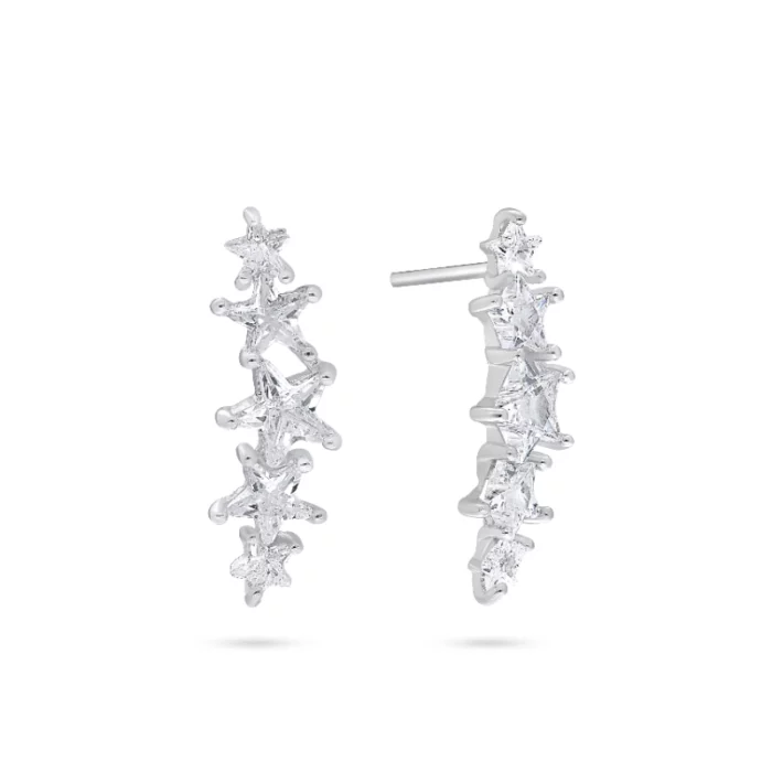 עגילים מדהימים בצורת כוכבים נוצצים המשתלבים אחד מתחת לשני – מעניקים מראה אוורירי וייחודי עם קריצה לכוכבים בשמי הלילה. העיצוב המודרני יחד עם ברק האבנים הקורצות מביאים שילוב מנצח של אלגנטיות, שובבות וסטייל עדכני.