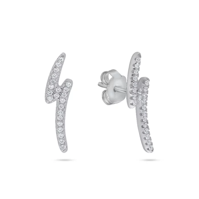✨ זוג עגילי כסף 925 מעוצבים בצורת ברק, משובצים באבני זירקוניה נוצצות לאורך כל העגיל. העיצוב הייחודי והדינמי מעניק מראה צעיר, מודרני ונועז – בחירה מושלמת למי שאוהבת לבלוט.