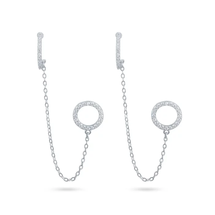 עגיל כסף חישוק משובץ עם שרשראות נופלות