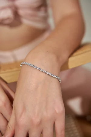 צמיד טניס כסף משובץ אבני זירקון מלבניות