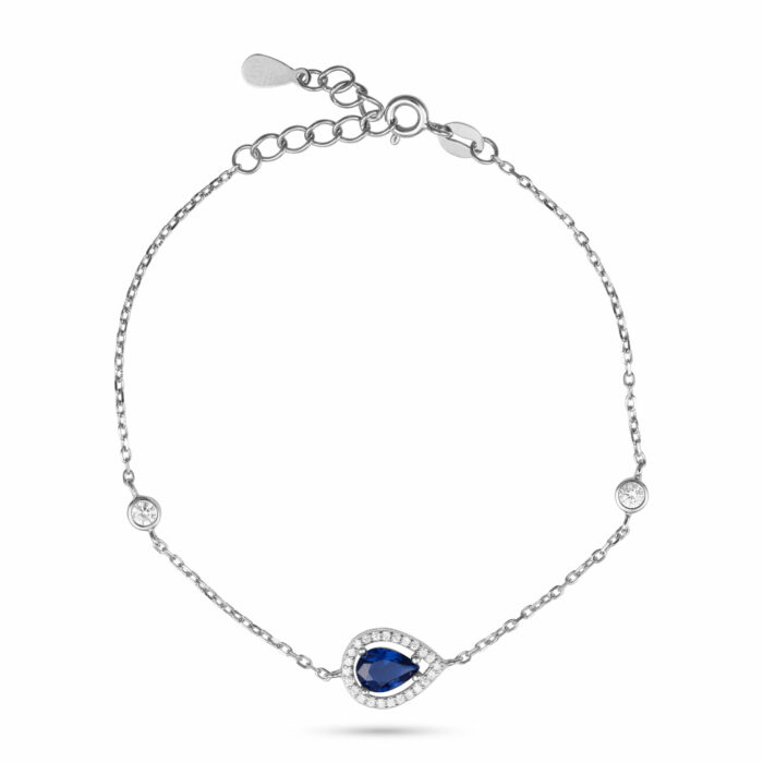 צמיד כסף עדין ויוקרתי, מעוצב עם תליון טיפה משובץ אבני זרקון נוצצים ואבן כחולה מדהימה במרכז. התכשיט המושלם לכל אירוע, המוסיף נגיעה של אלגנטיות ותחכום לכל מראה. 💝 מתנה מושלמת לעצמך או לאהובה 👗 עיצוב נצחי שמתאים לכל הופעה ✨ עשוי מכסף איכותי 925 סטרלינג, המבטיח עמידות וברק לאורך זמן 🔗 כולל שרשרת עם אפשרות להארכה להתאמה מושלמת לכל גודל פרק כף היד