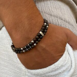 צמיד חרוזים לגבר – | שילוב גווני חום, שחור ואפור