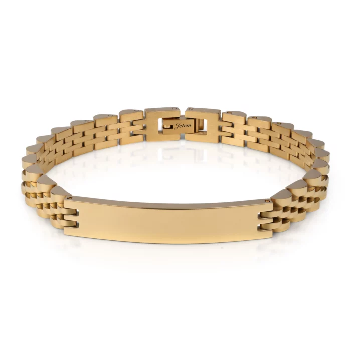 צמיד סטיל אלגנטי בעל חוליות רחבות בעיצוב ייחודי. עשוי פלדת אל-חלד עמידה, הצמיד משלב לוחית קלאסית הניתנת להתאמה אישית בחריטה. מגיע בצבעים זהב, כסף, שחור וכסף עם שילוב של שחור, מושלם להוספת נגיעה יוקרתית לכל הופעה. עיצוב מודרני ומתוחכם המותאם לסגנון הגברי המוביל.✨
