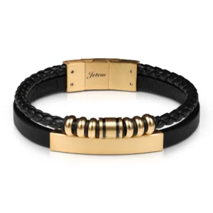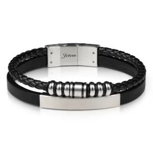 צמיד לגבר בעיצוב יוקרתי, משלב רצועות עור קלועות ורצועות שטוחות, עם חרוזי מתכת דקורטיביים הנותנים לצמיד נופך מודרני ועוצמתי. האבזם עשוי פלדת אל-חלד איכותית, המבטיחה עמידות ומראה יוקרתי לאורך זמן. הצמיד מתאים לשימוש יומיומי ולכל אירוע מיוחד, להשלמת כל מראה בסטייל ובאלגנטיות. ✨