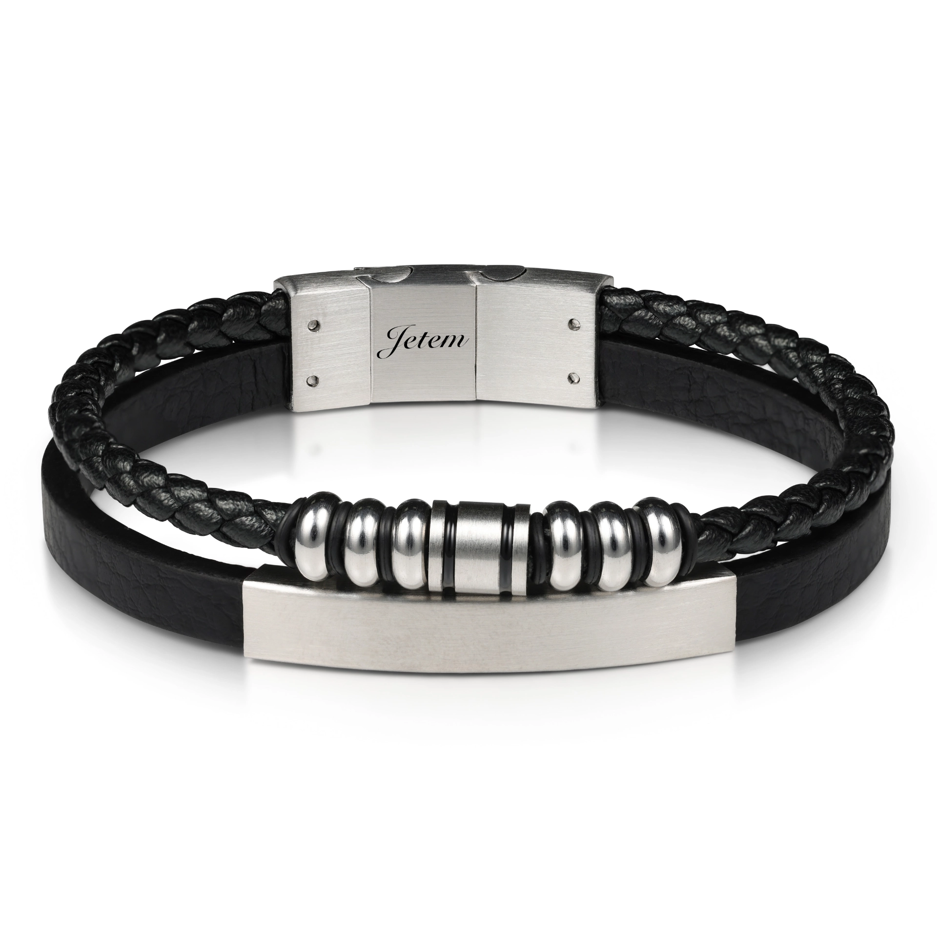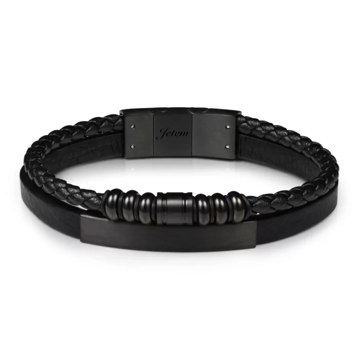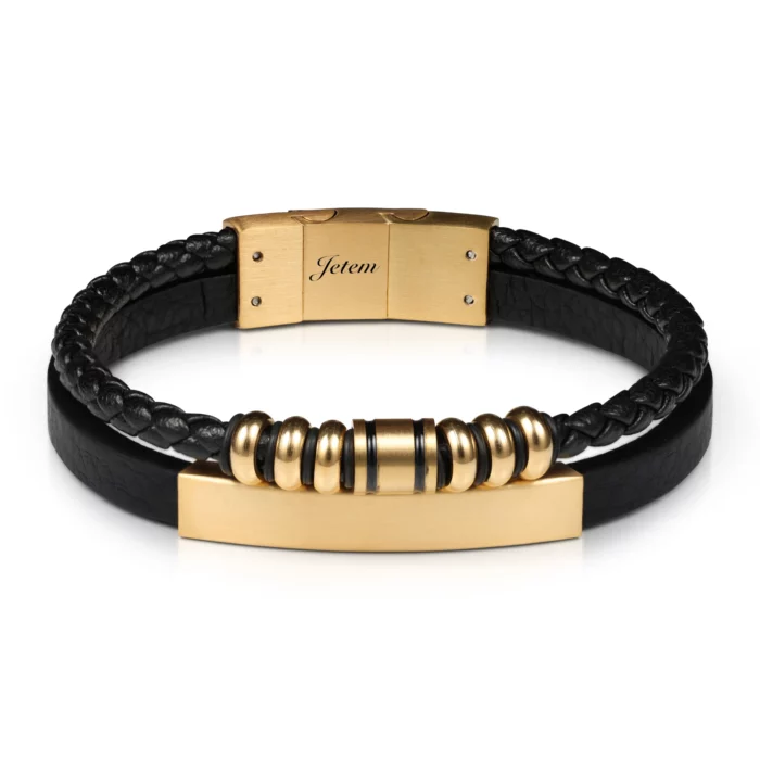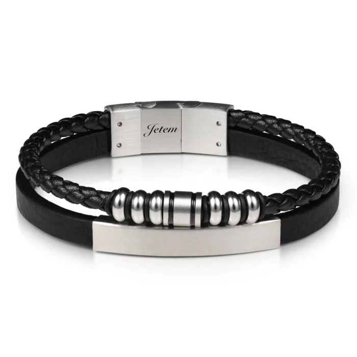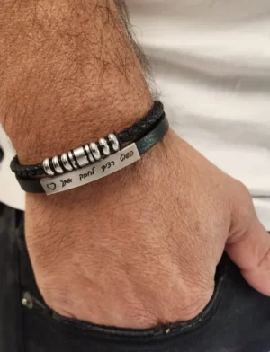 צמיד לגבר עם רצועות עור וחרוזי מתכת בעיצוב יוקרתי