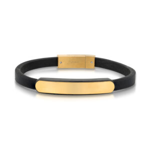 צמיד גבר משולב עור וחרוזי סטיל בגווני שחור וזהב –
