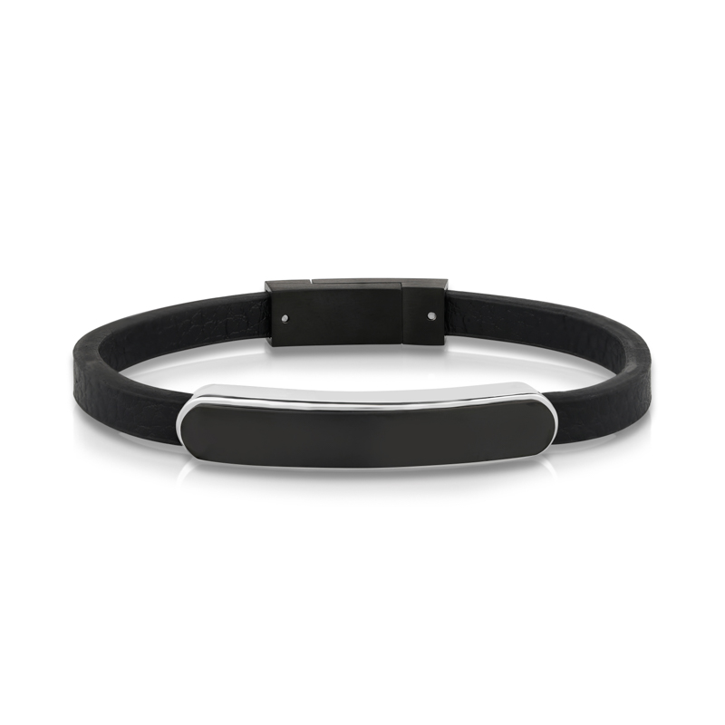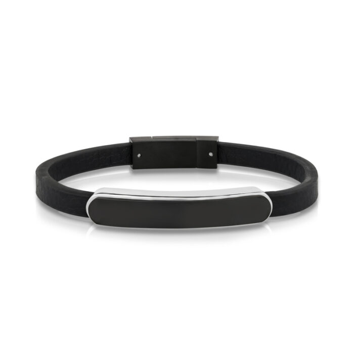 צמיד לגבר עשוי עור בצבע שחור מעוצב משולב עם פלטה שחורה מט