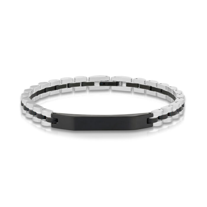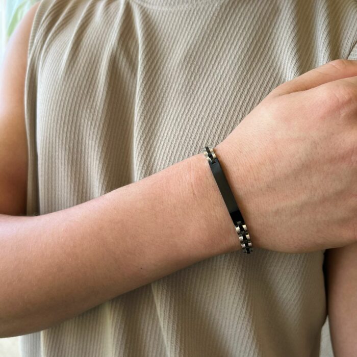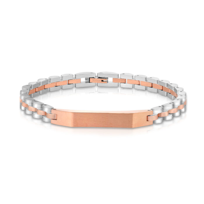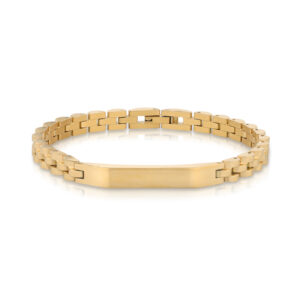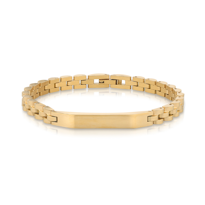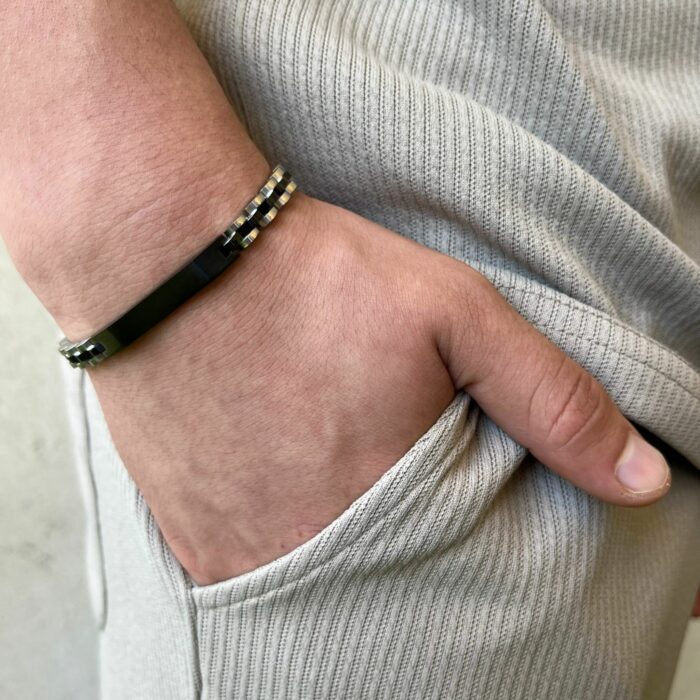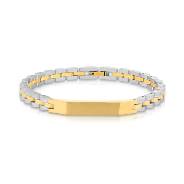 צמיד לגבר עשוי פלדת אל חלד בצבע כסף מעוצב חוליות משולב פלטה זהב מט במרכז