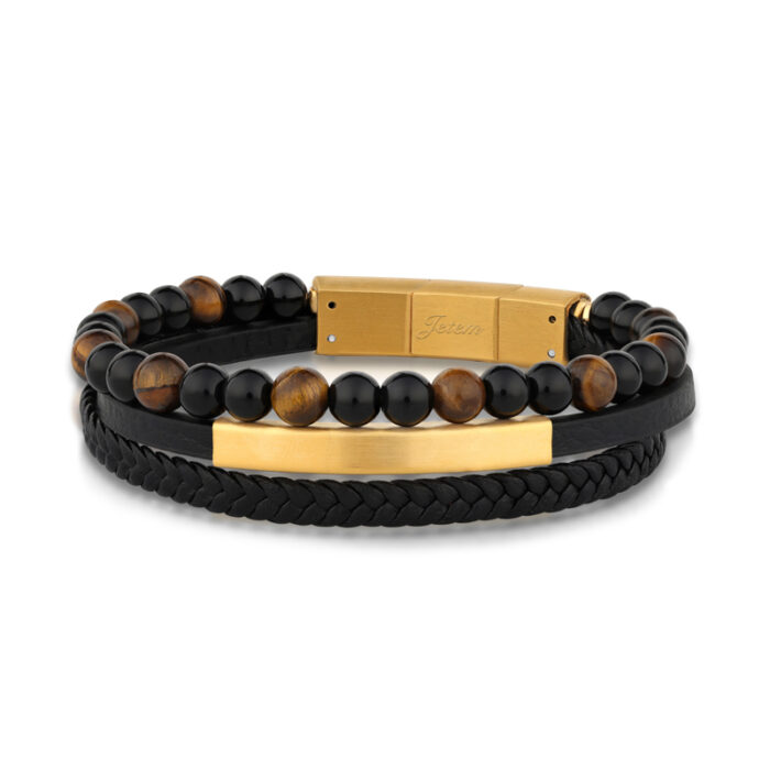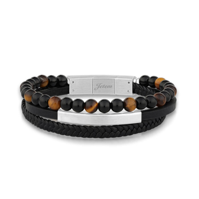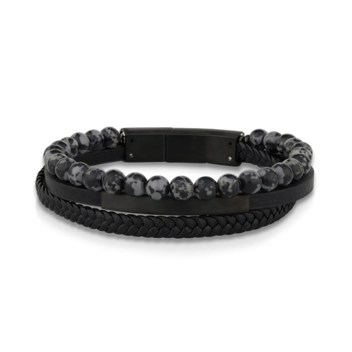 צמיד לגבר מבית – שילוב עור ואבני אמטייט שחורות