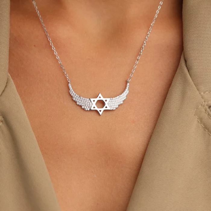 ✔ עיצוב: מגן דוד משולב כנפיים – שילוב של מסורת ואלגנטיות מודרנית