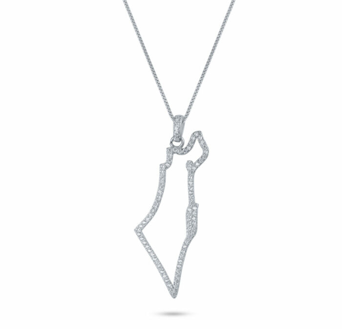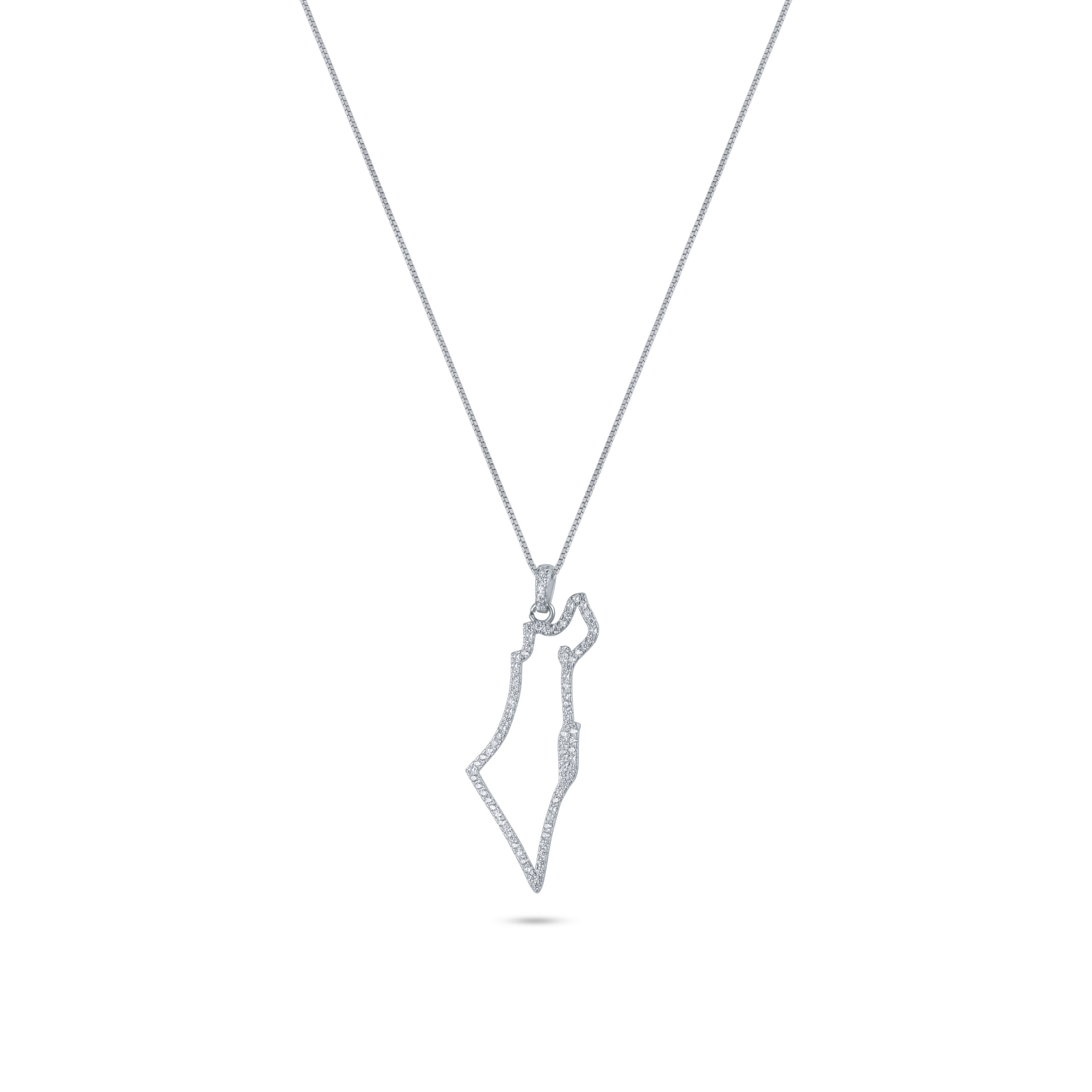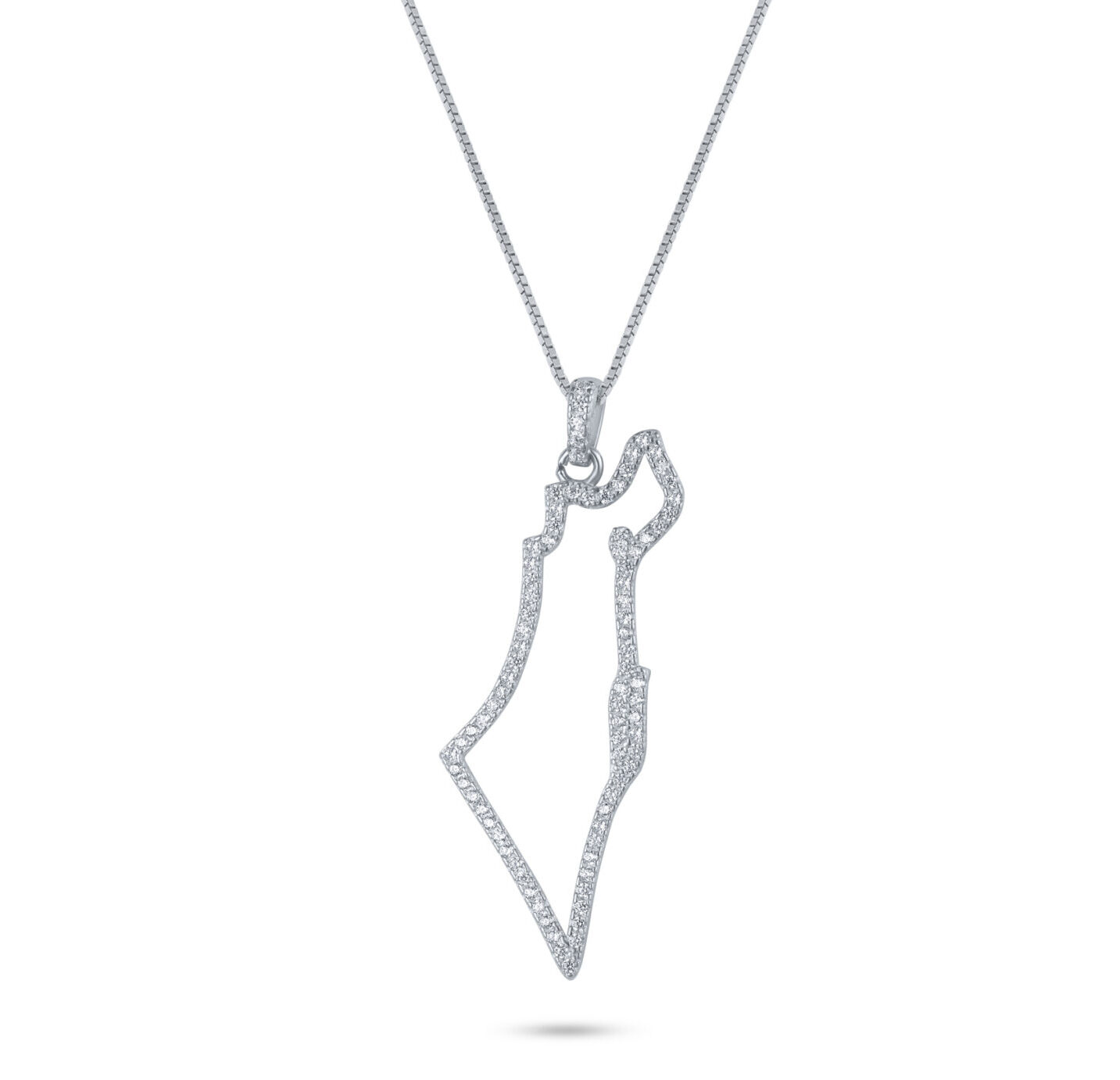 עמוד הבית כל השרשראות שרשרת כסף מפת ארץ ישראל משובצת