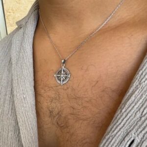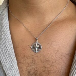 ⭐⭐⭐⭐⭐שרשרת גבר – | תליון מצפן כסף