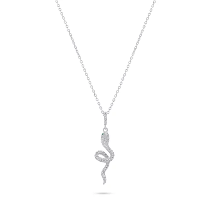 ✨ שרשרת כסף 925 עם תליון נחש משובץ ואבן ירוקה לעין ✨