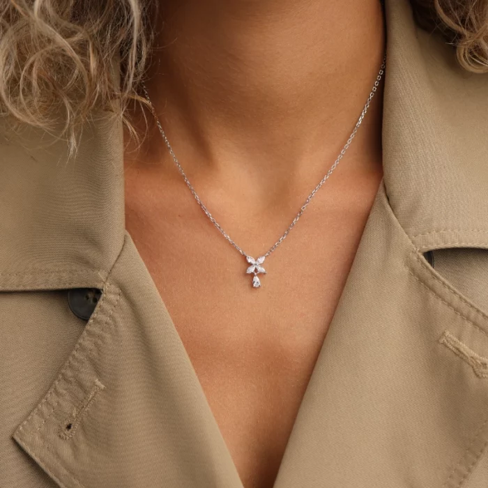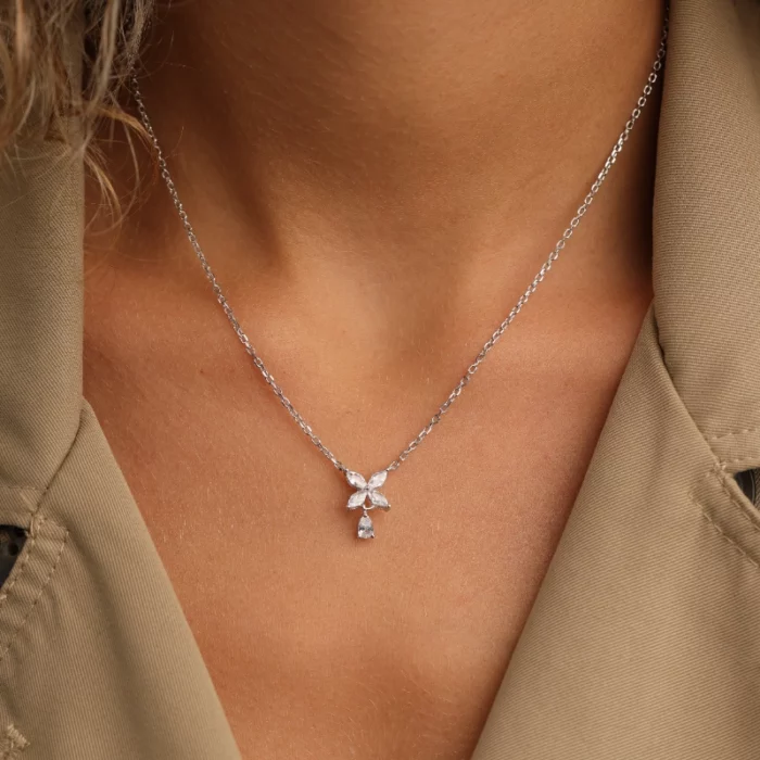 עמוד הבית כל השרשראות שרשראות כסף שרשרת כסף פרח נופל טיפה משובץ