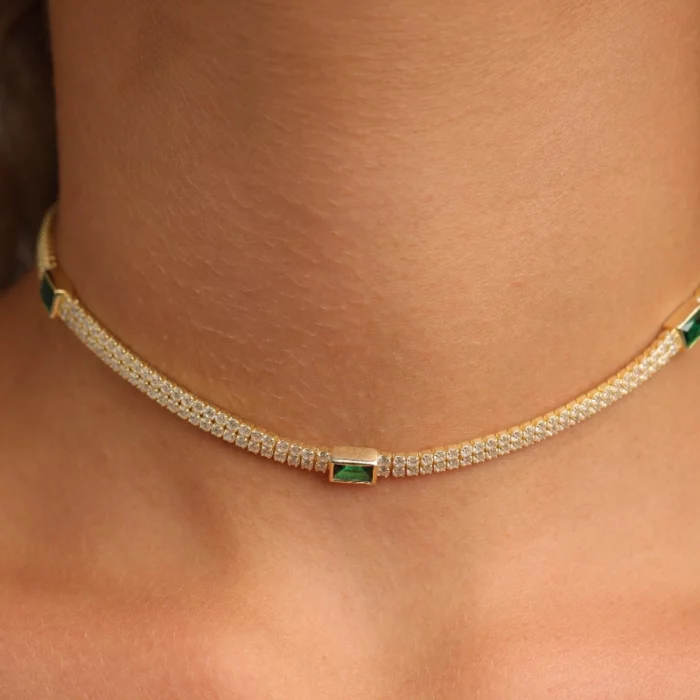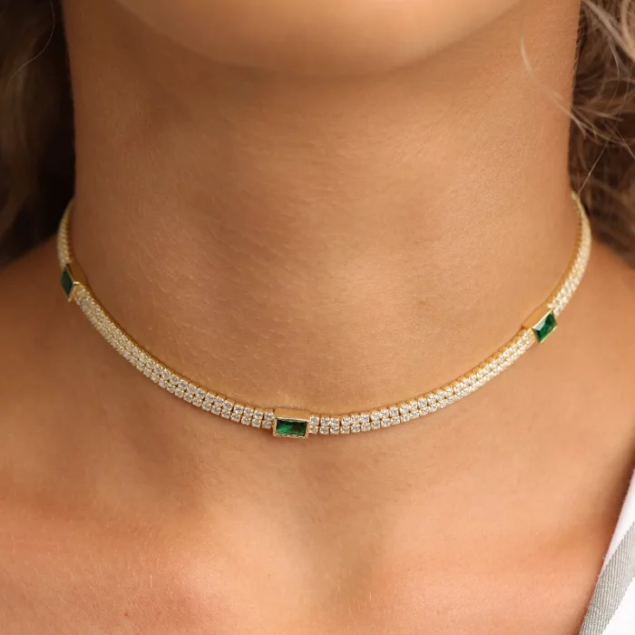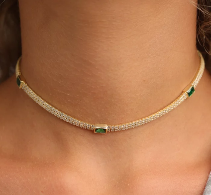 צ'וקר מעוצב בעדינות ובסטייל נוצץ, בציפוי זהב יוקרתי ומשובץ כולו אבני זירקון מנצנצות בגימור מושלם. השיבוץ היוקרתי מעניק לשרשרת ברק מרהיב שמתאים לכל אירוע ולכל לוק מלא בשיק .