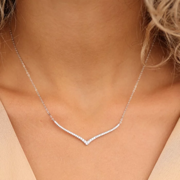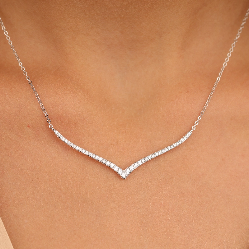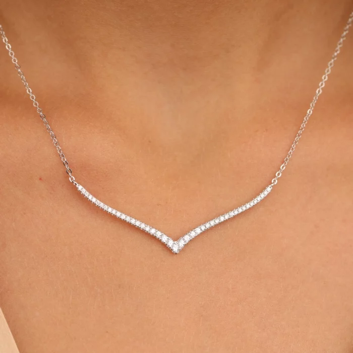 שרשרת כסף 925 בעיצוב V משובץ זירקונים – אלגנטיות במיטבה
