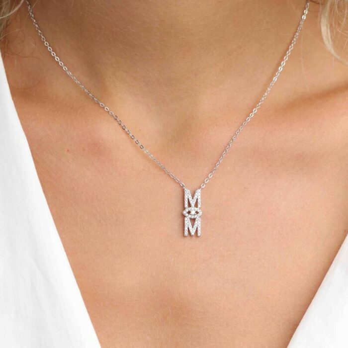 עמוד הבית כל השרשראות שרשראות כסף שרשרת כסף תליון תליון MOM עם עין