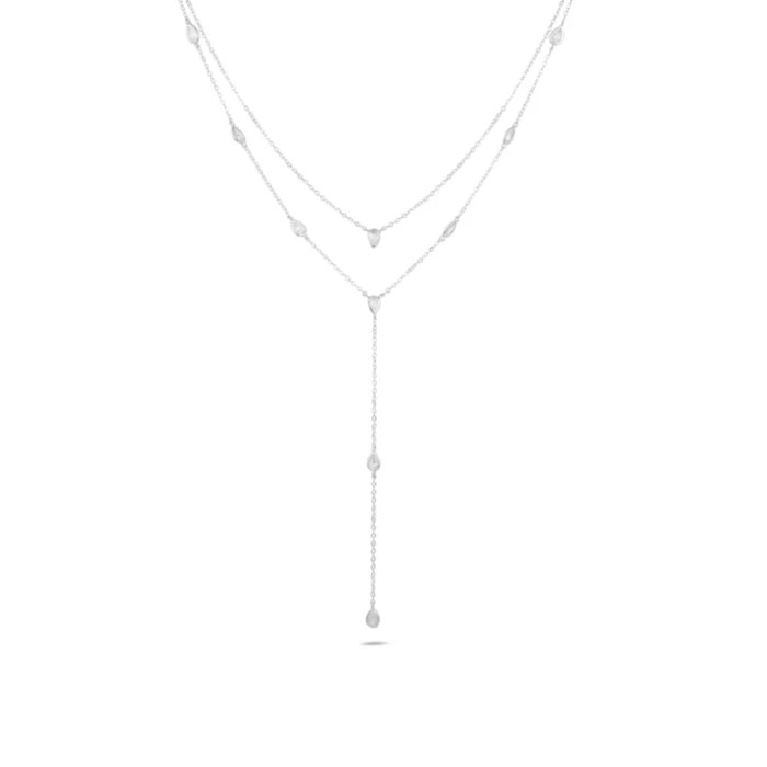 שרשרת כסף 925 כפולה בסגנון עניבה עם תליוני טיפות זירקון