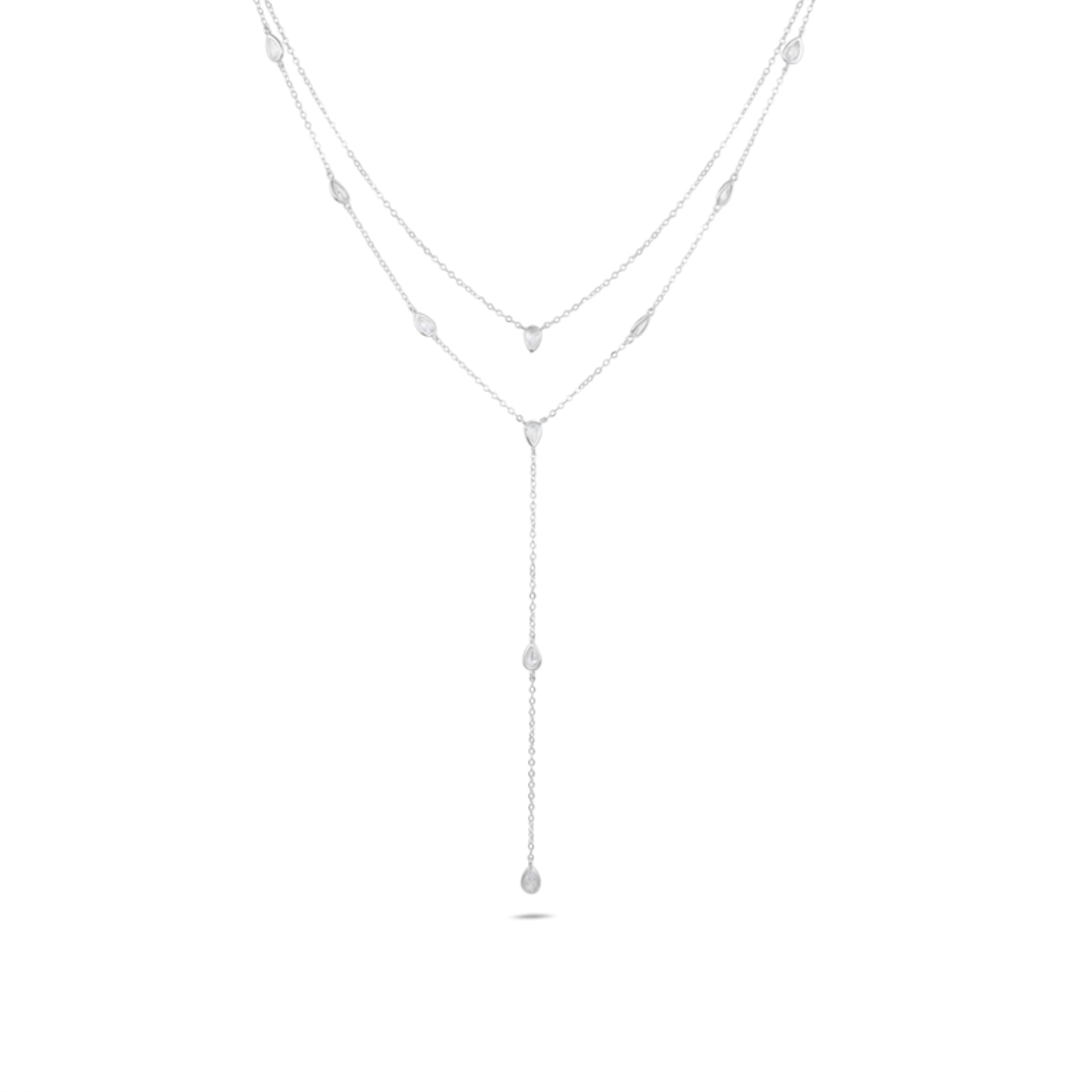 עמוד הבית כל השרשראות שרשראות עניבה שרשרת כסף 925 כפולה בסגנון עניבה עם תליוני טיפות זירקון