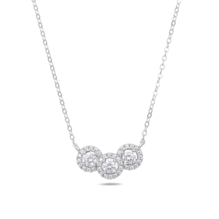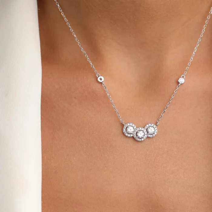 עמוד הבית כל השרשראות שרשראות כסף שרשרת כסף 925 עם שלושה תליוני סוליטר משובצים אבני זירקון